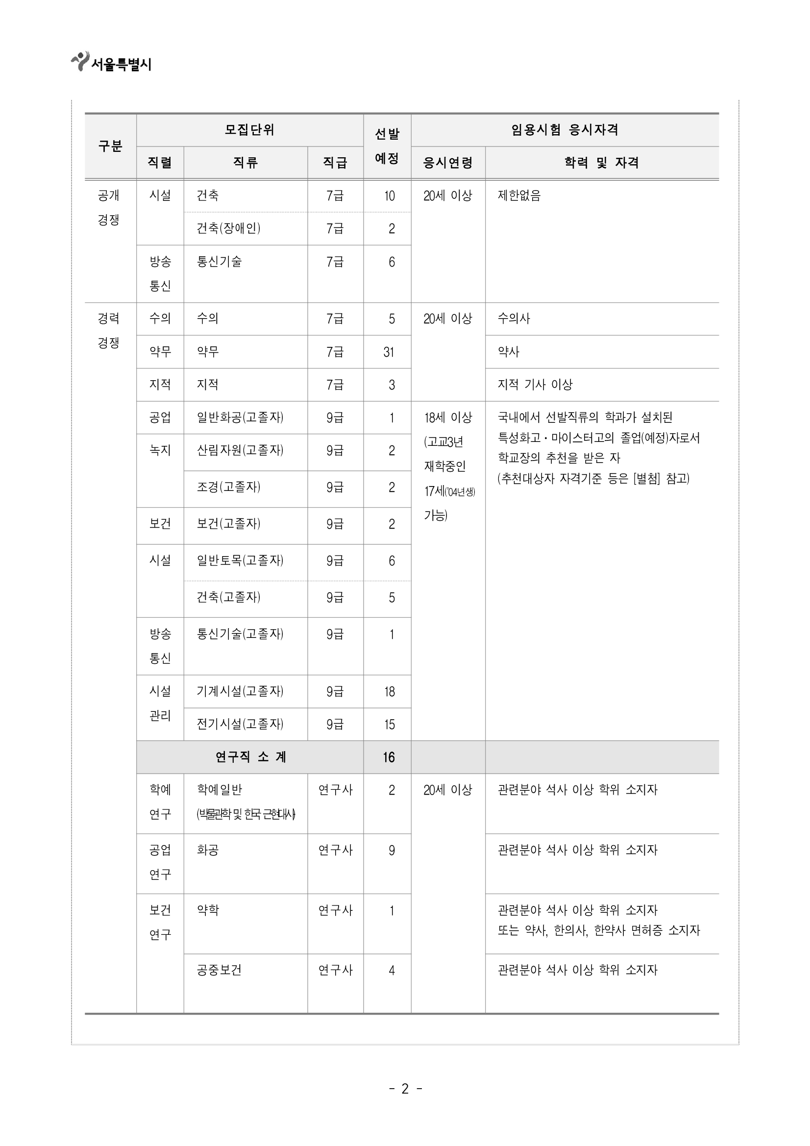 이는 21년 10월 16일(토요일)에 시행되는 임용 시험의 직렬별 인원, 일정등에 대한 사전 안내이고, 응시자격 등 세부요건은 6월중에 별도 공고를 한다고 하였습니다.