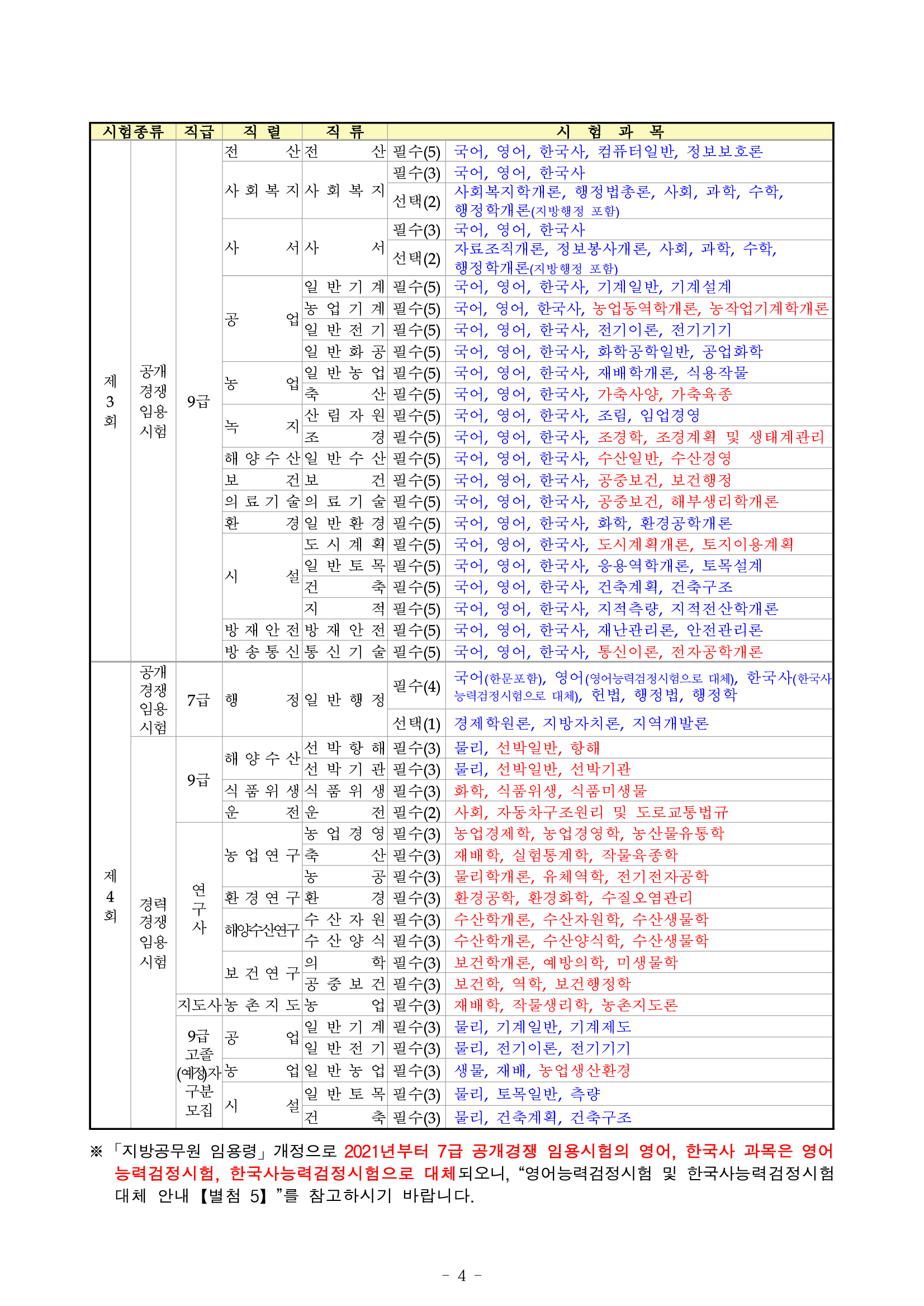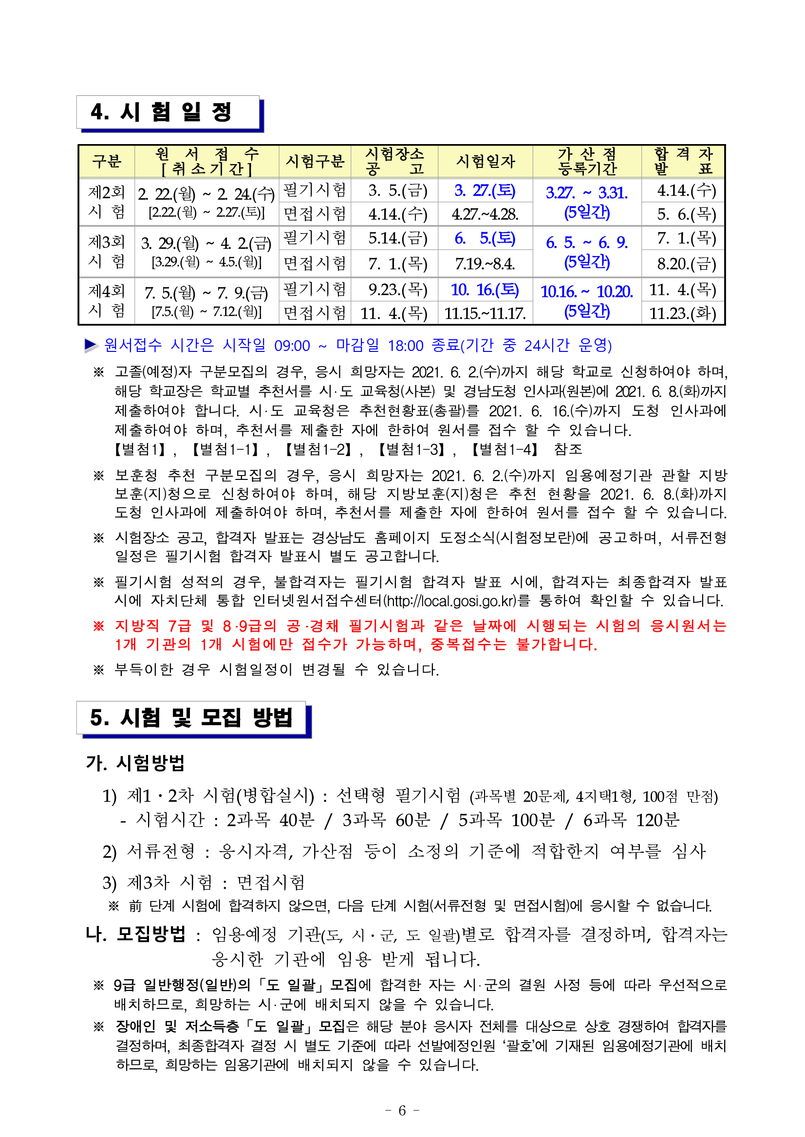 그리고 경남 지방직 7급 공무원 시험은 4회 때 선발하게 되고 운전직이나 농촌지도사, 연구사, 9급 고졸자 구분 모집도 이 때 시행하게 됩니다.