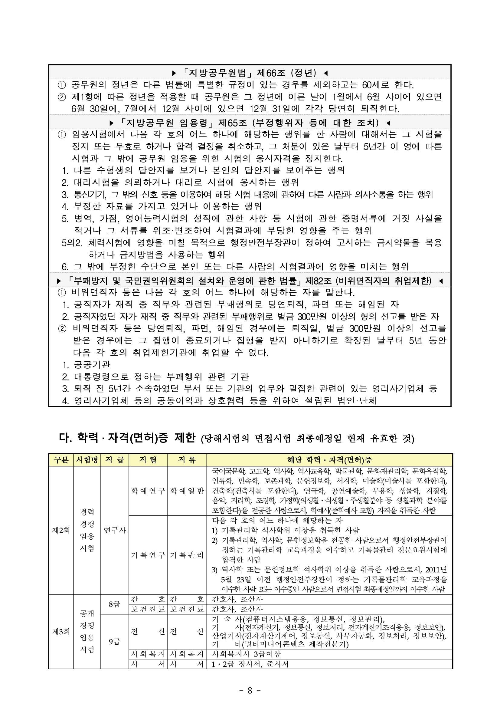 2회는 학예연구와 기록연구직만 채용을 하게되고 3회 시험에에서는 일반행정직부터 세무직, 사회복지직, 전산직, 간호직 등 대다수의 직렬을 선발하게 됩니다.