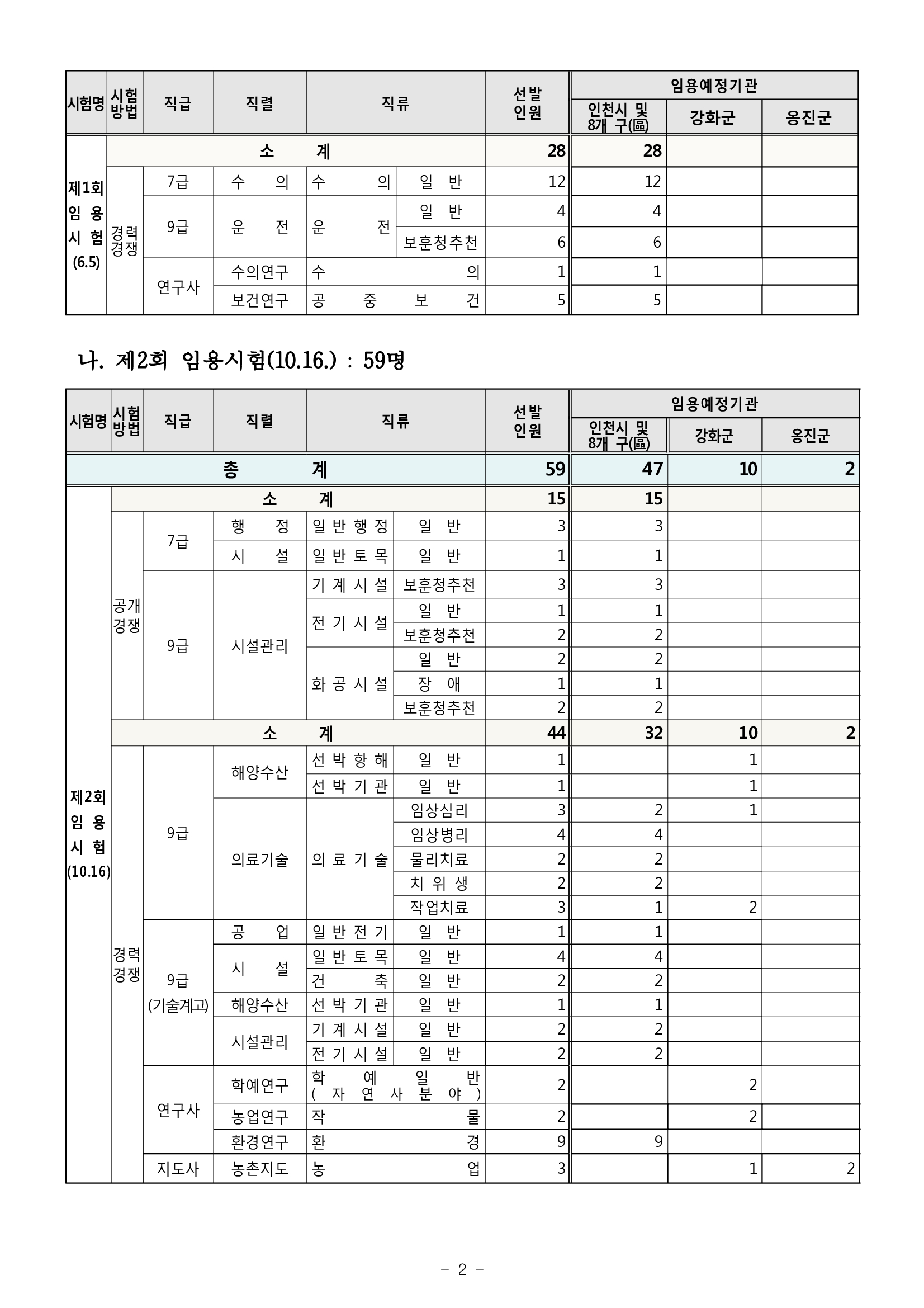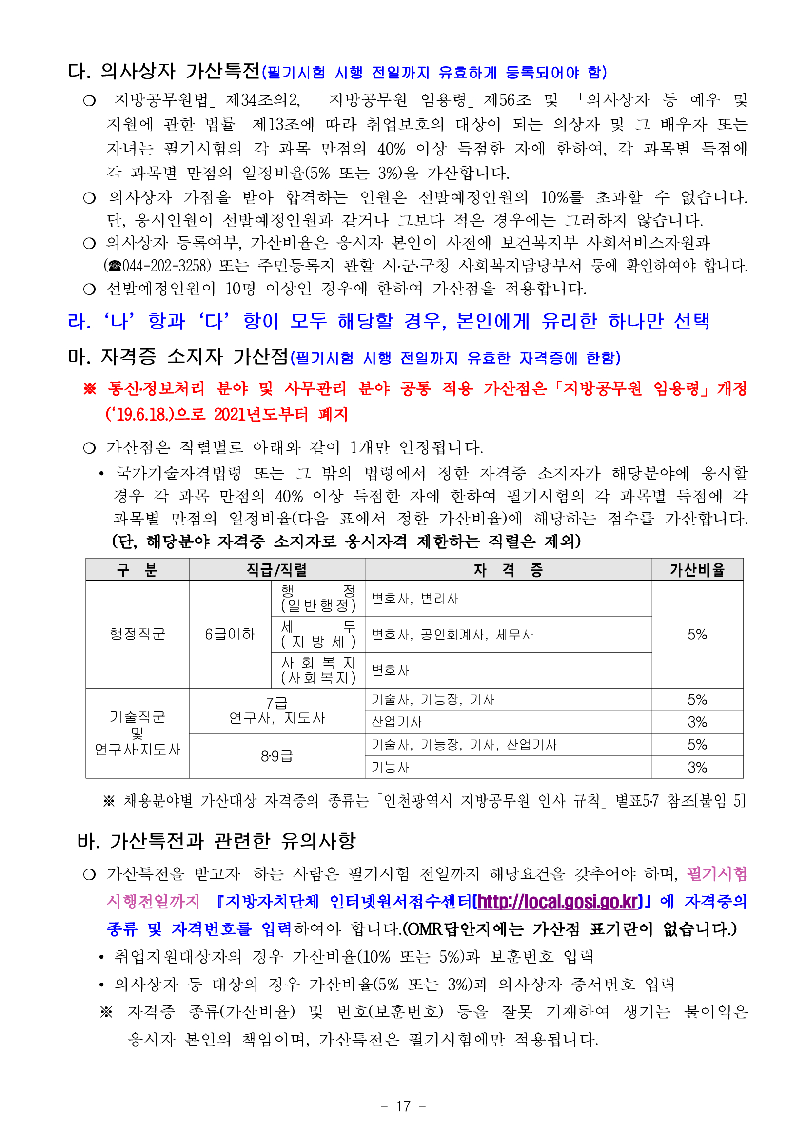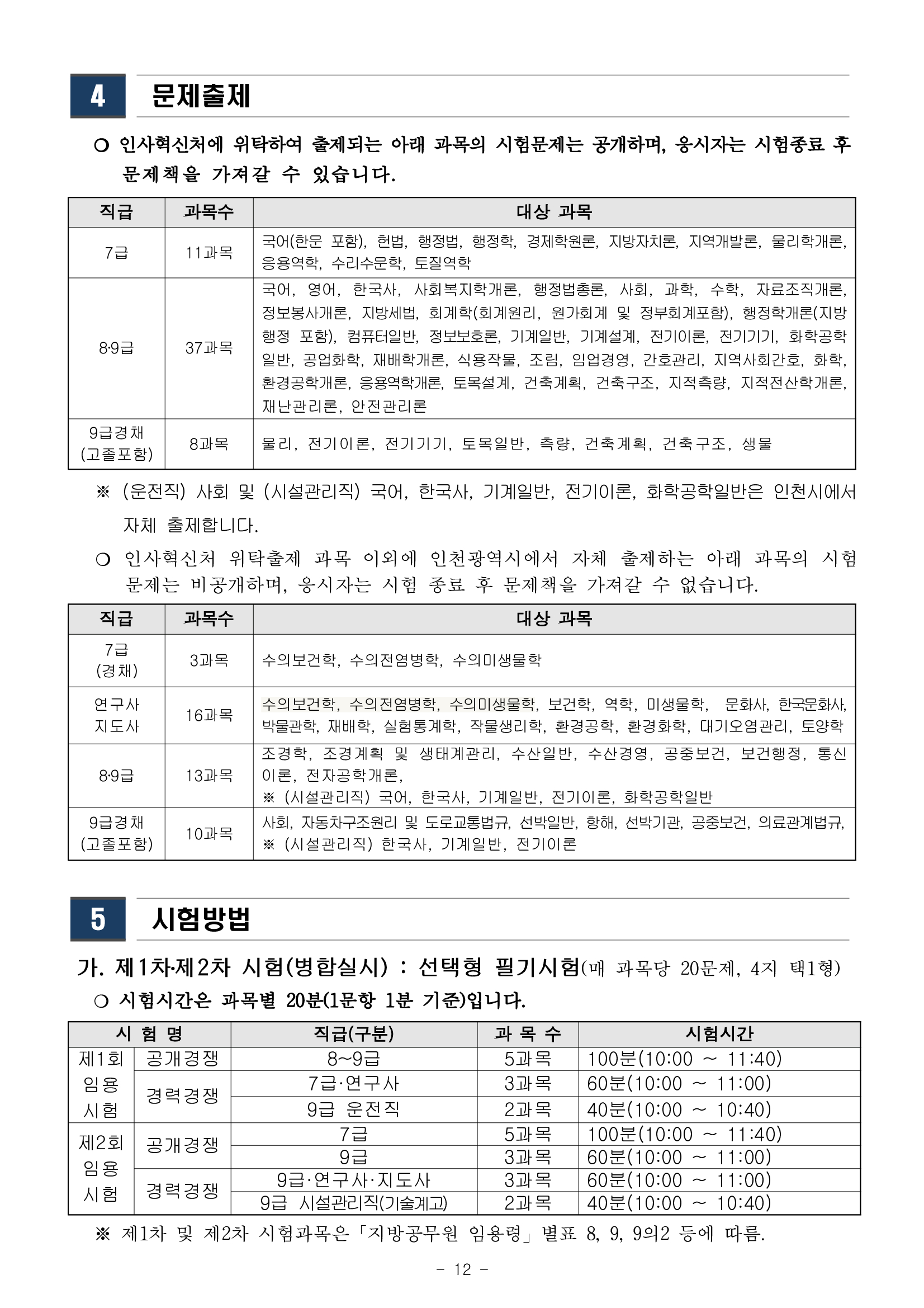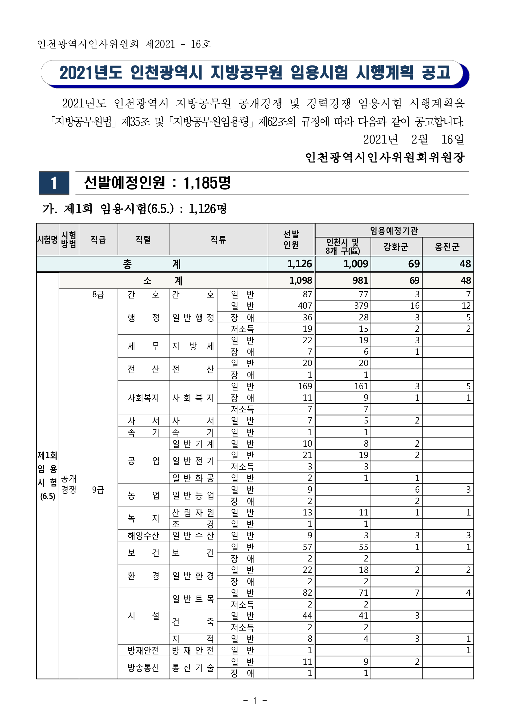 인천시에서는 2021년 지방직 공무원 임용시험 시행계획 공고를 발표했습니다.