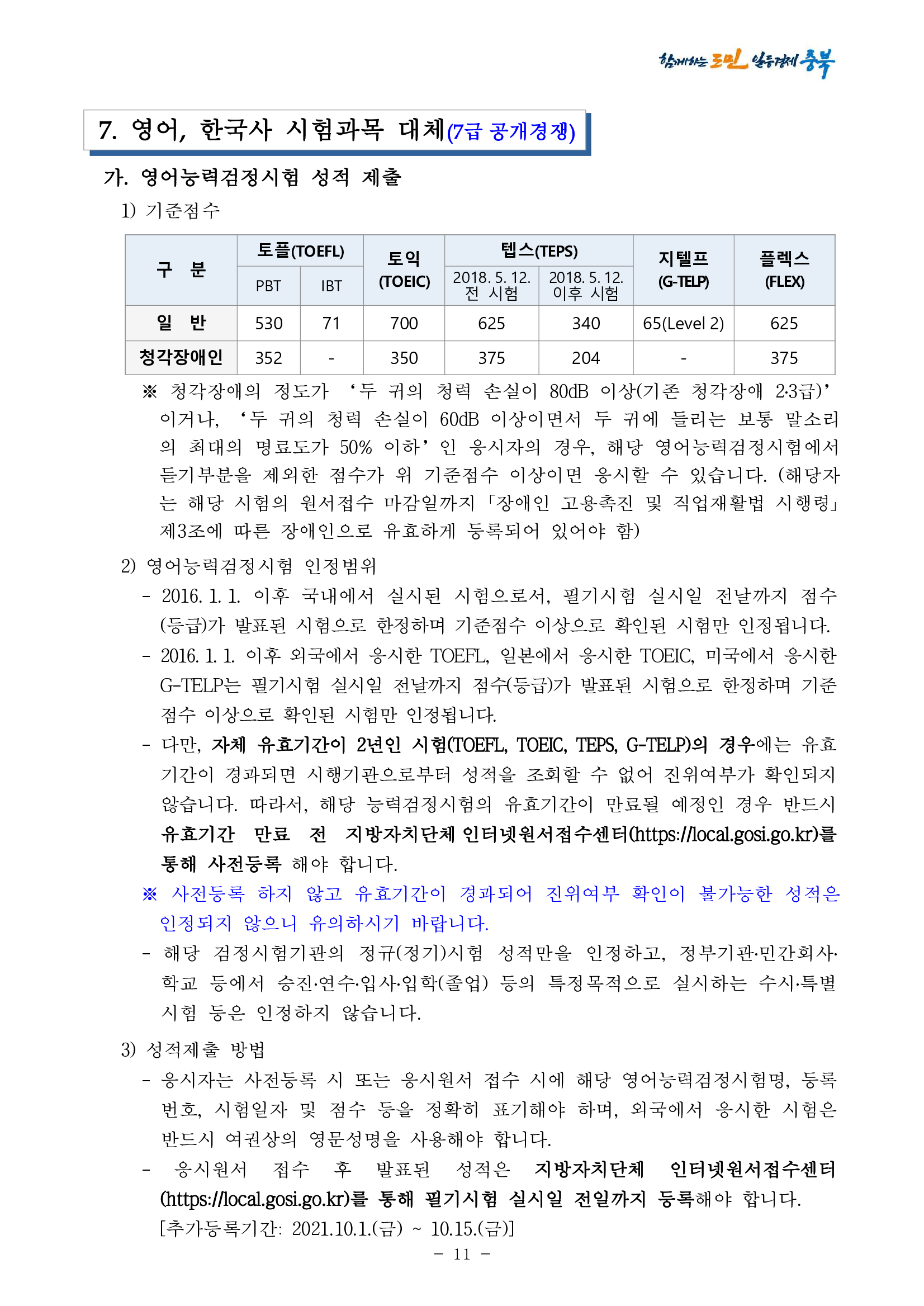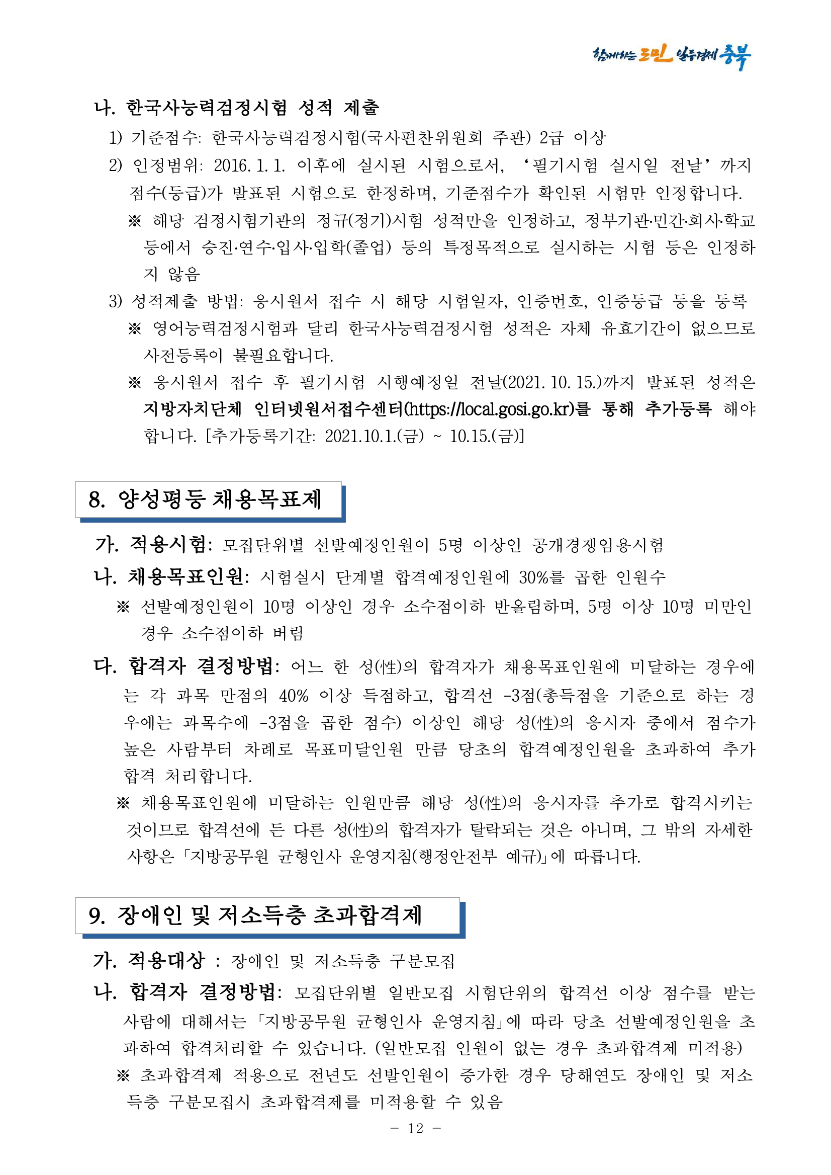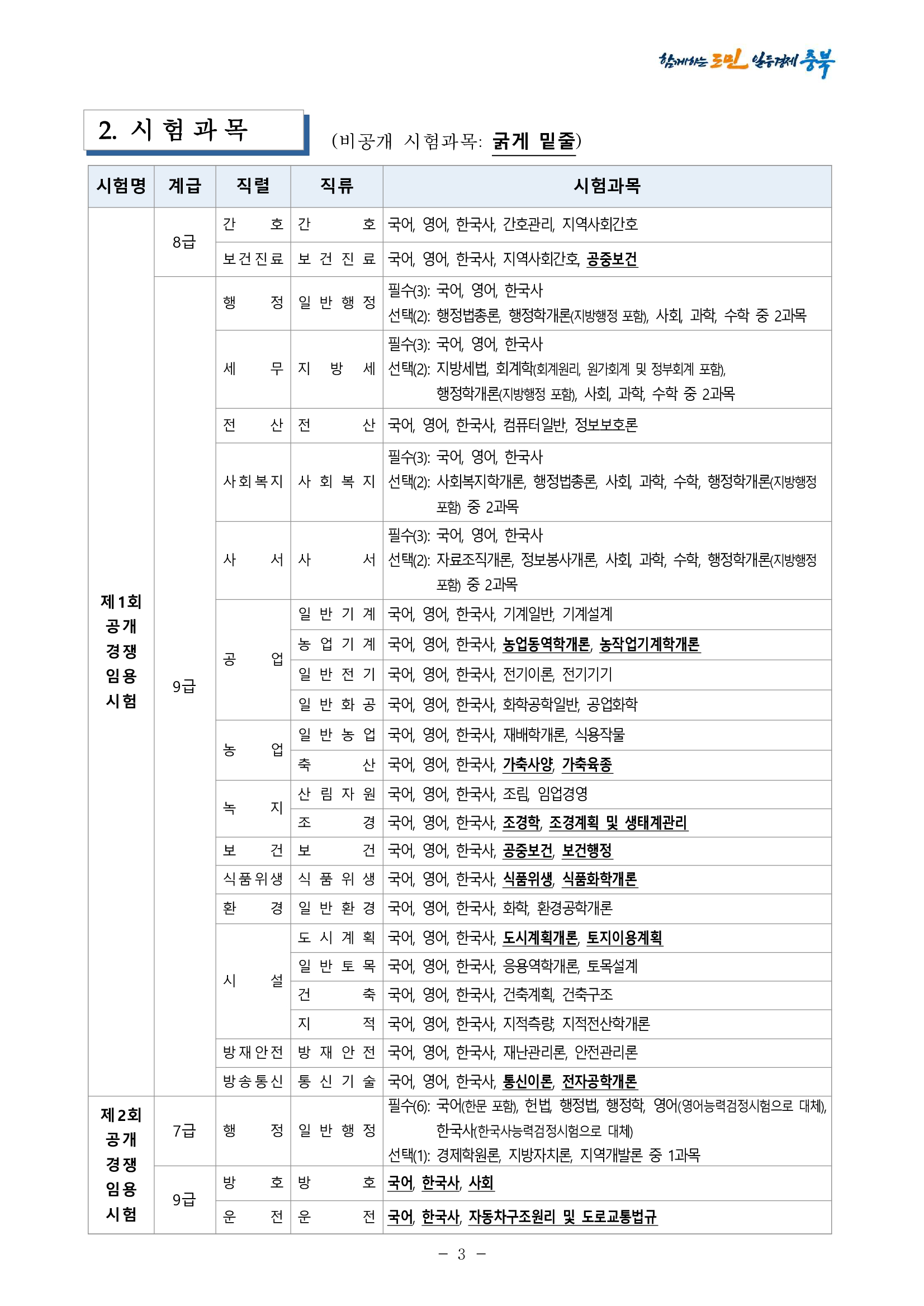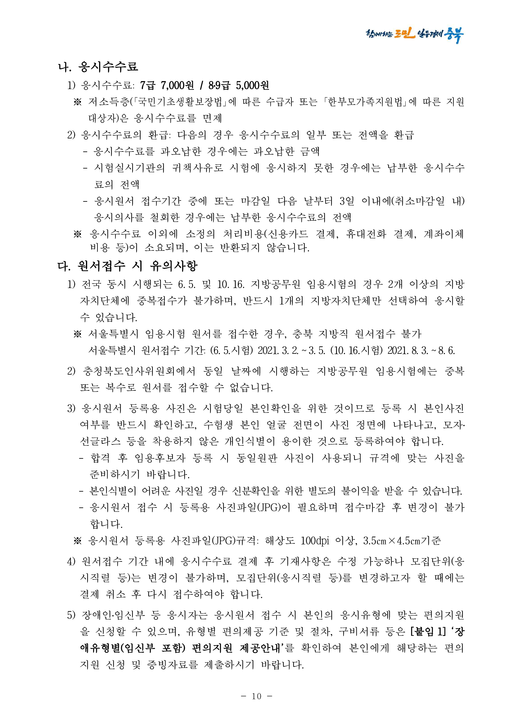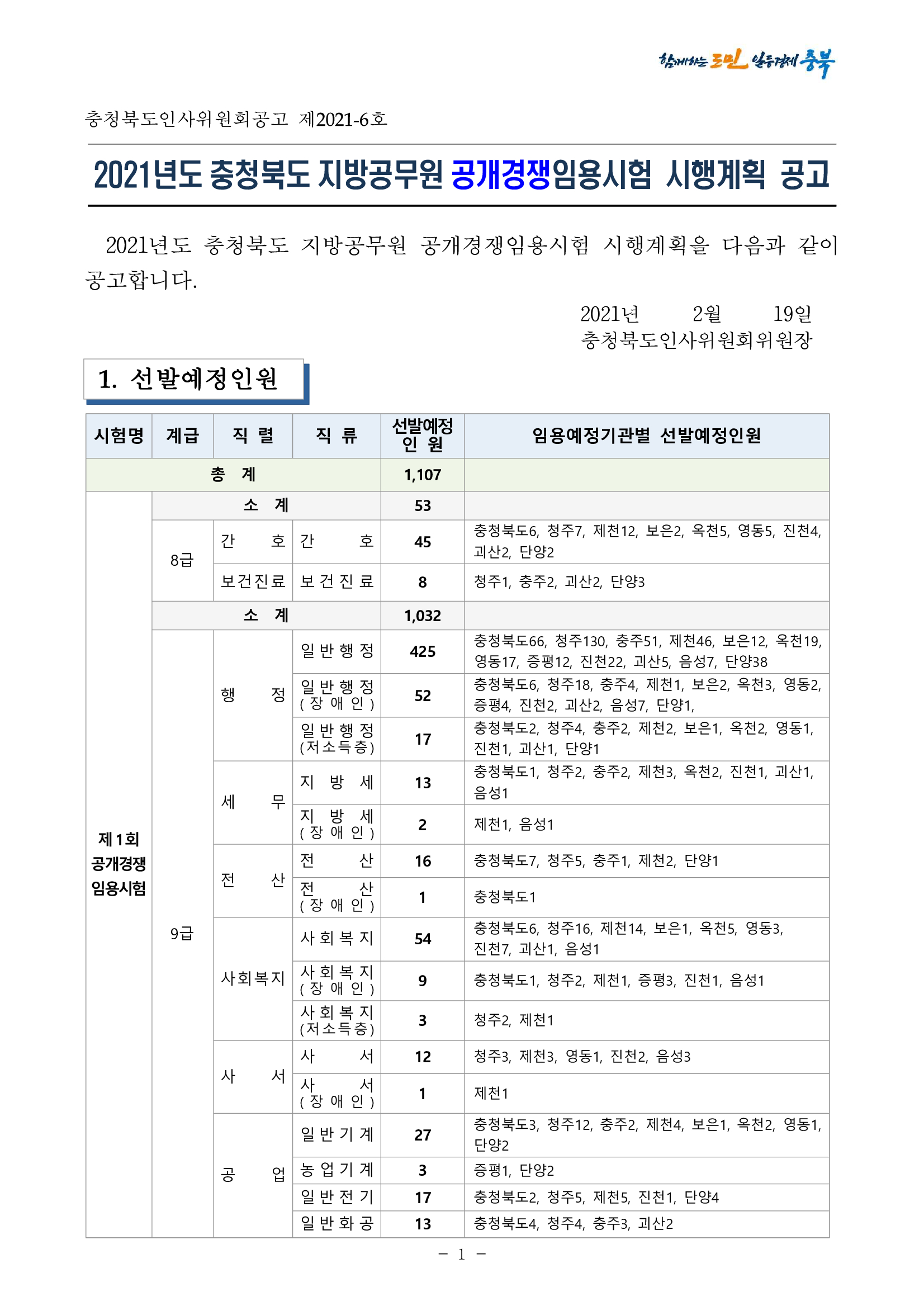 충청북도 인사위원회 에서는 2021년 충청북도 지방직 공무원 공개 경쟁 임용시험 시행계획 공고를 발표했습니다.