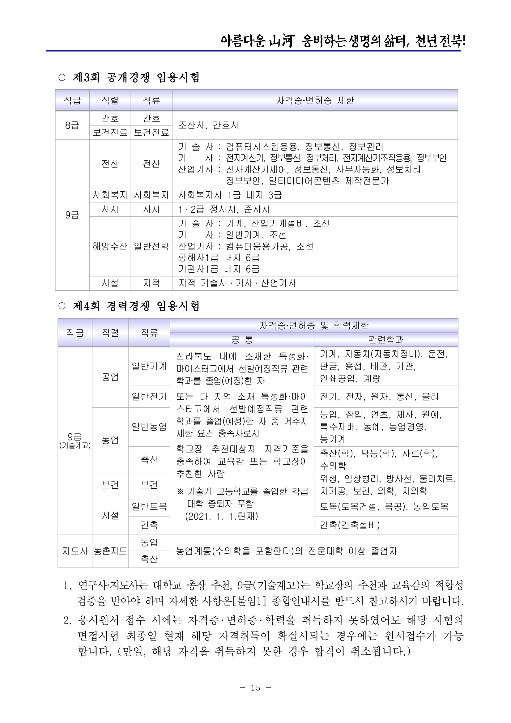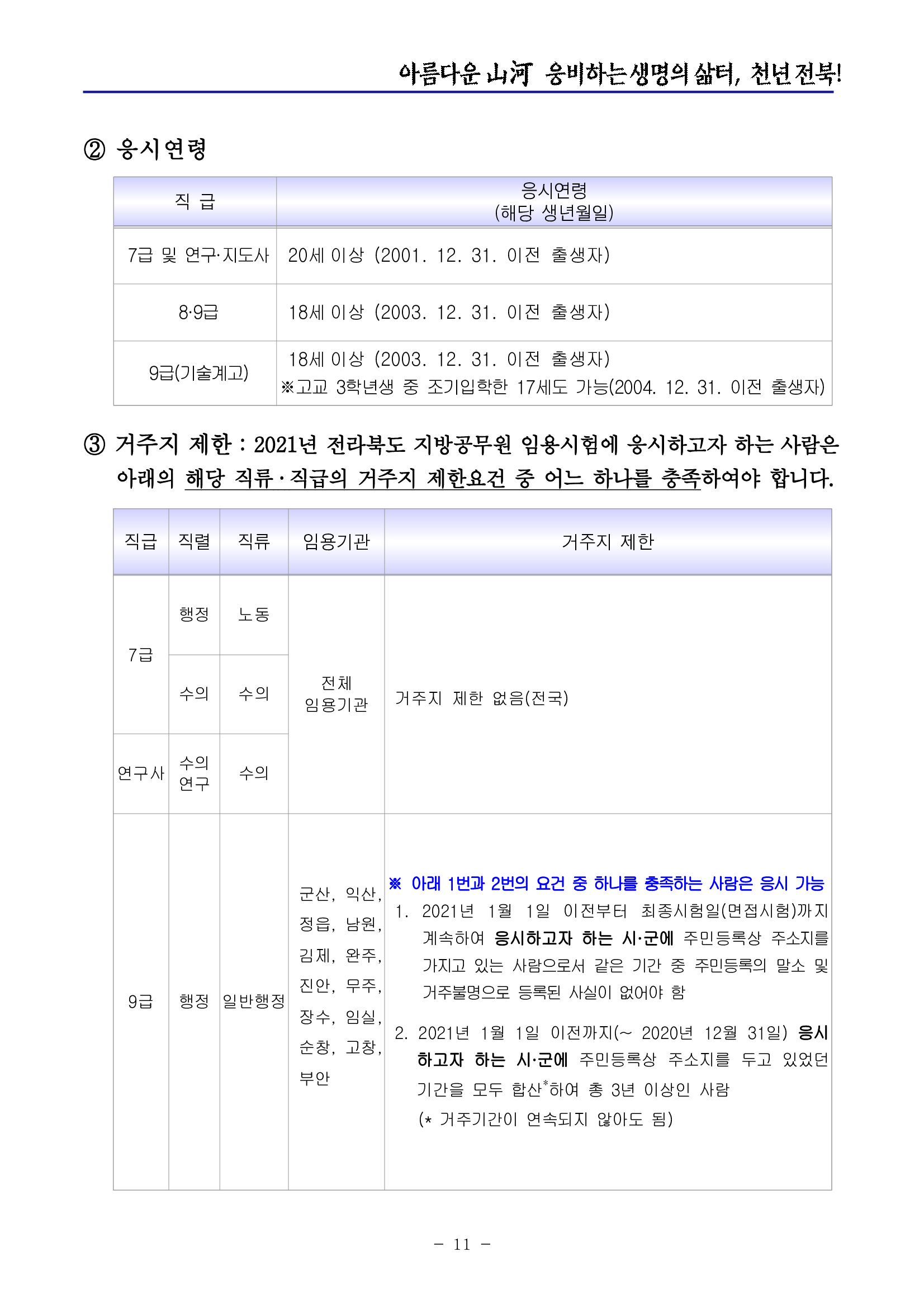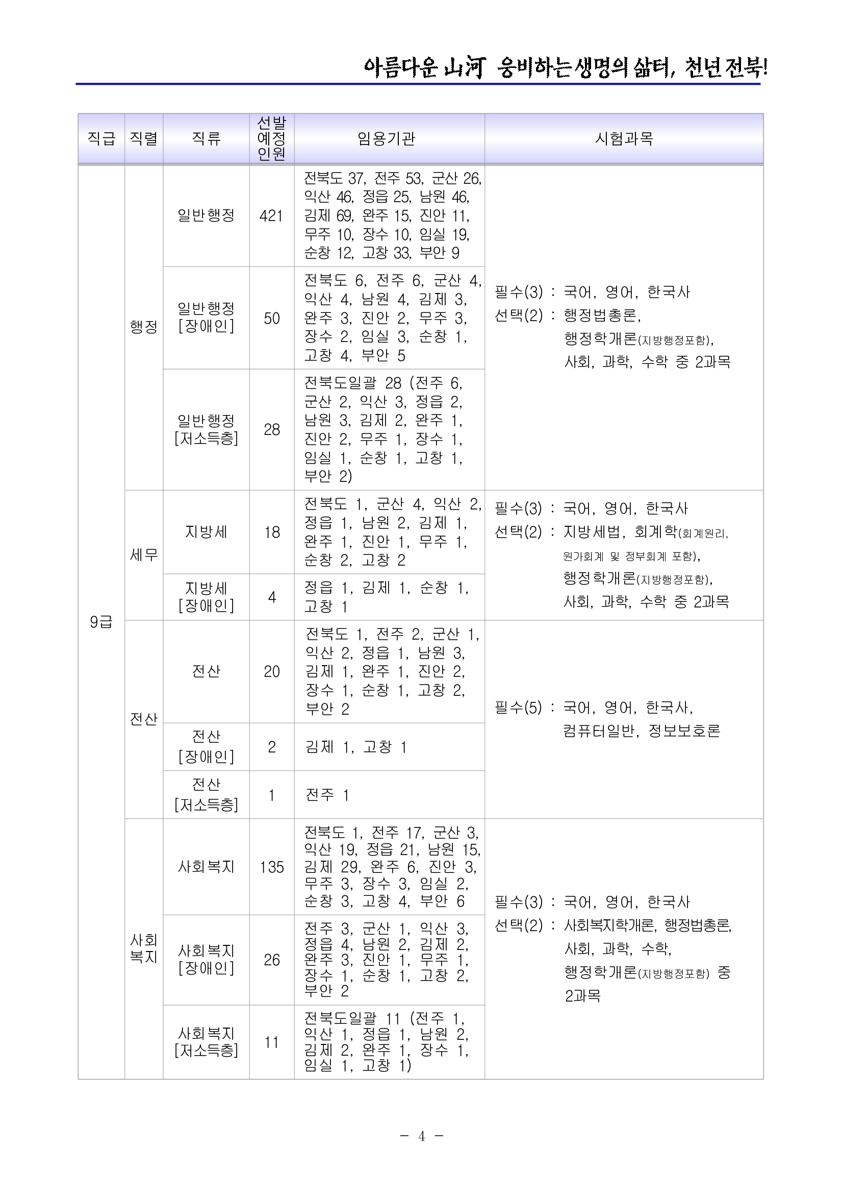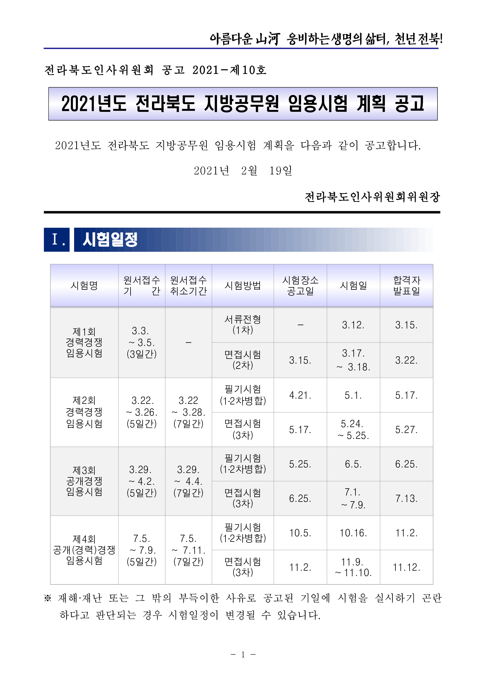 전라북도에서는 2021년 지방직 공무원 임용시험 계획 공고를 아래와 같이 발표했습니다.