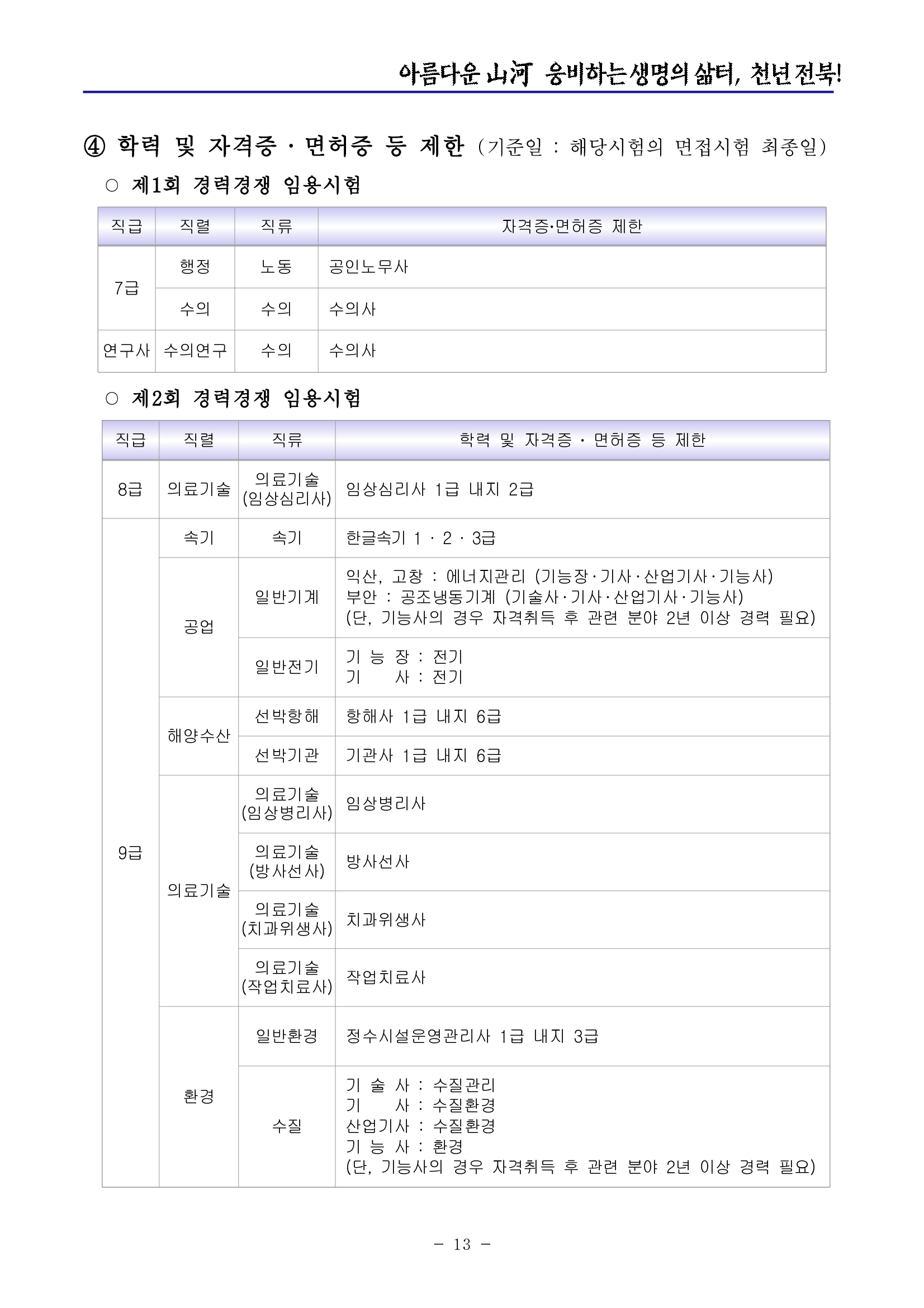 전라북도 운전직 공무원은 11명을 선발할 예정이며