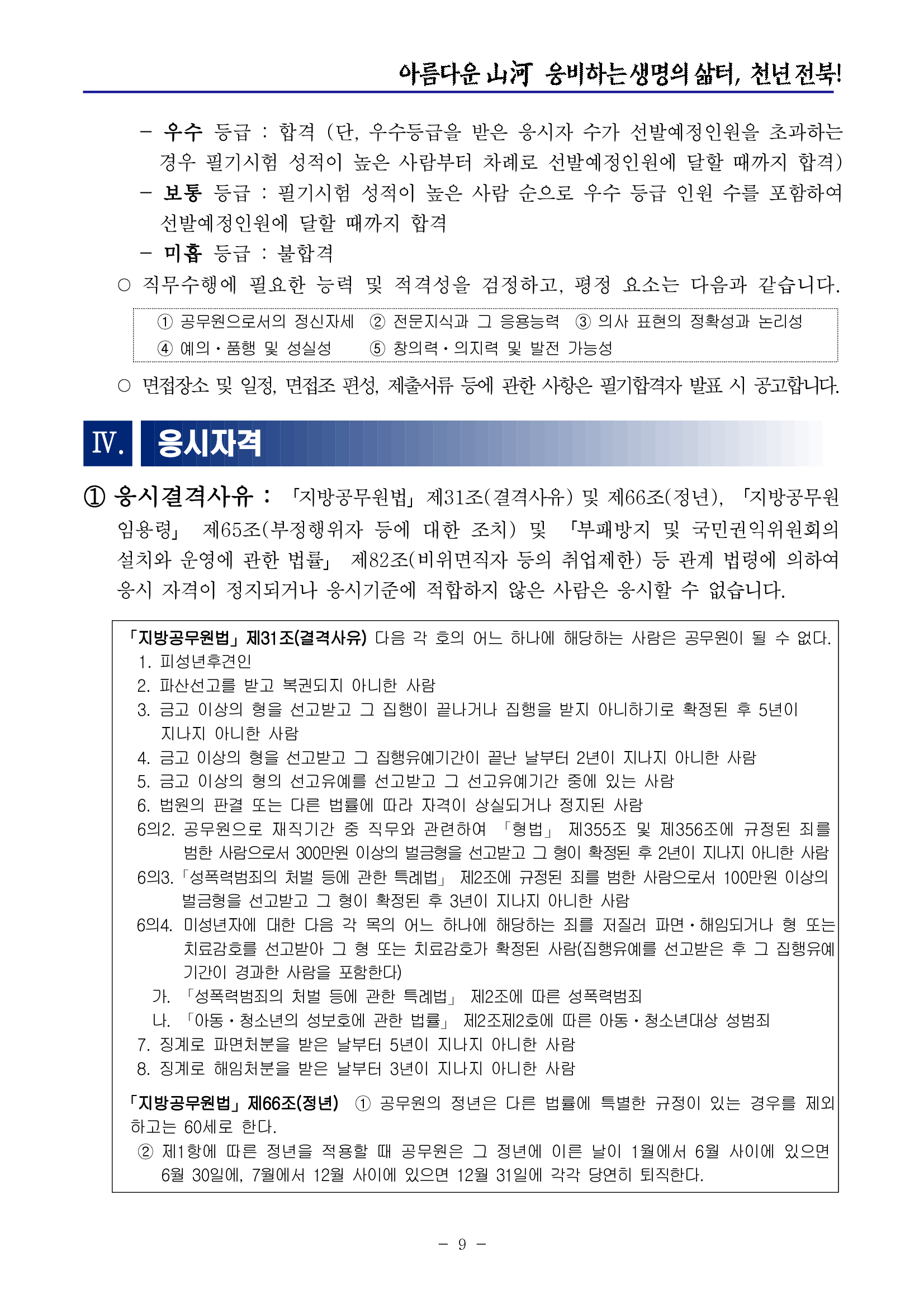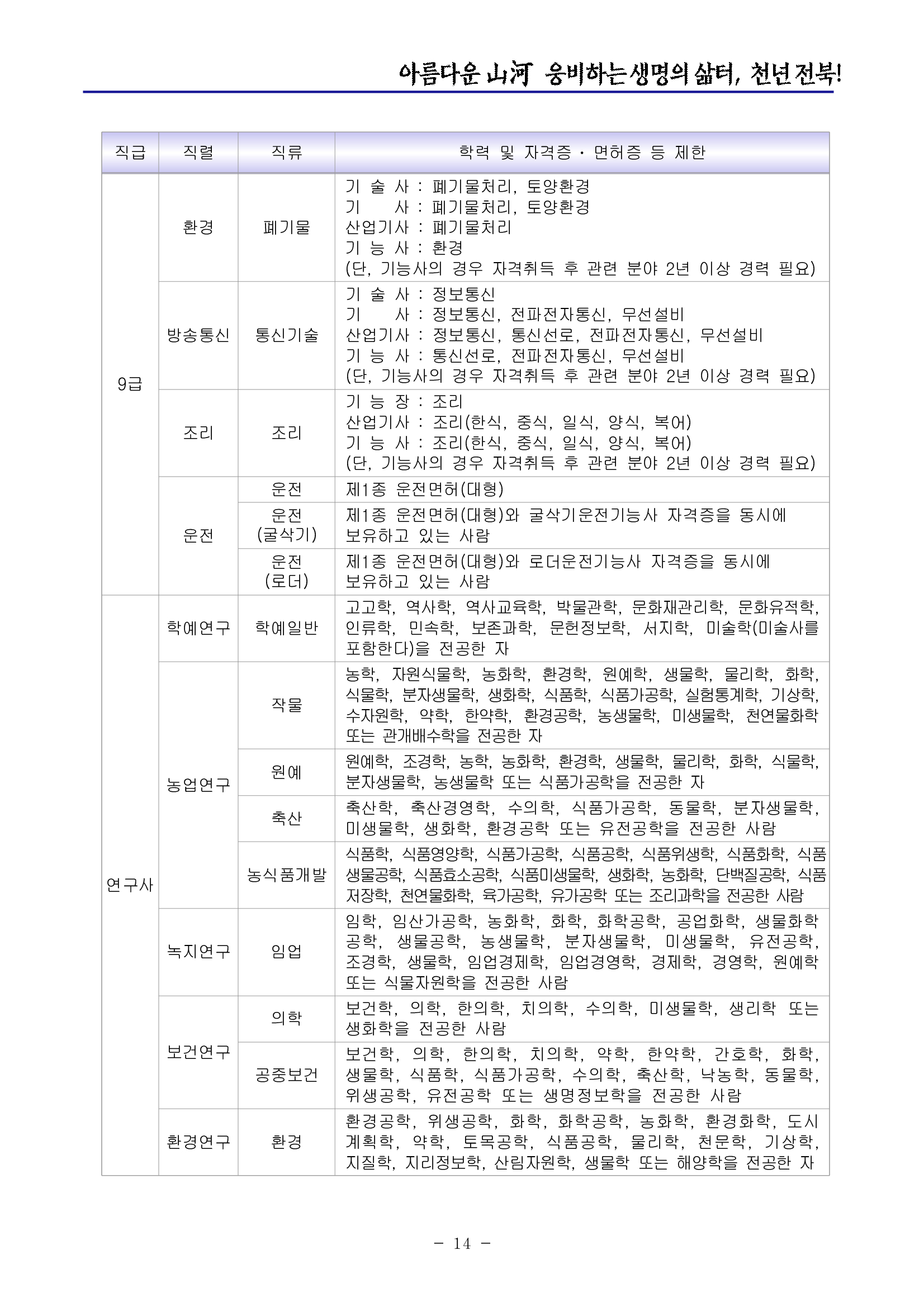 일반농업직 56명, 축산직 24명, 산림자원직 20명, 조경직 9명,