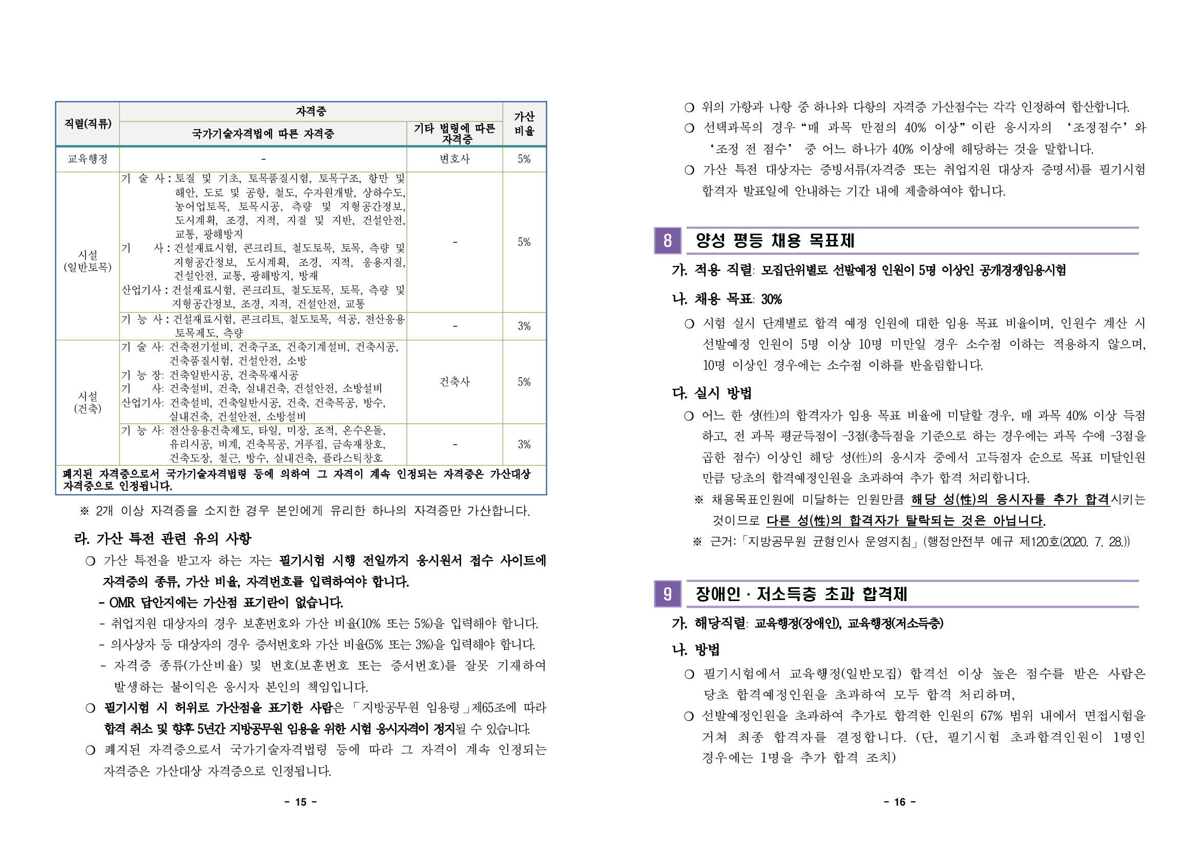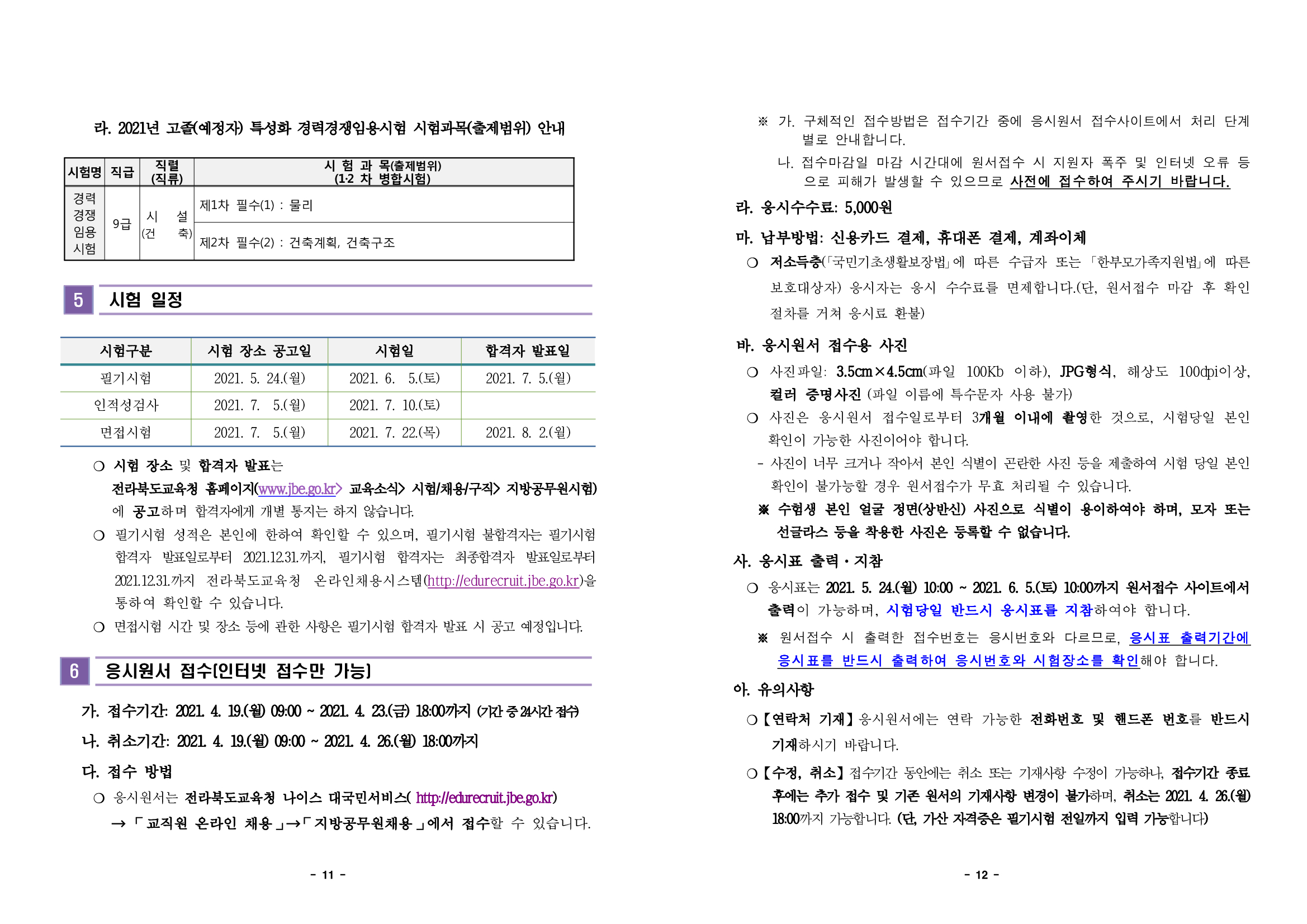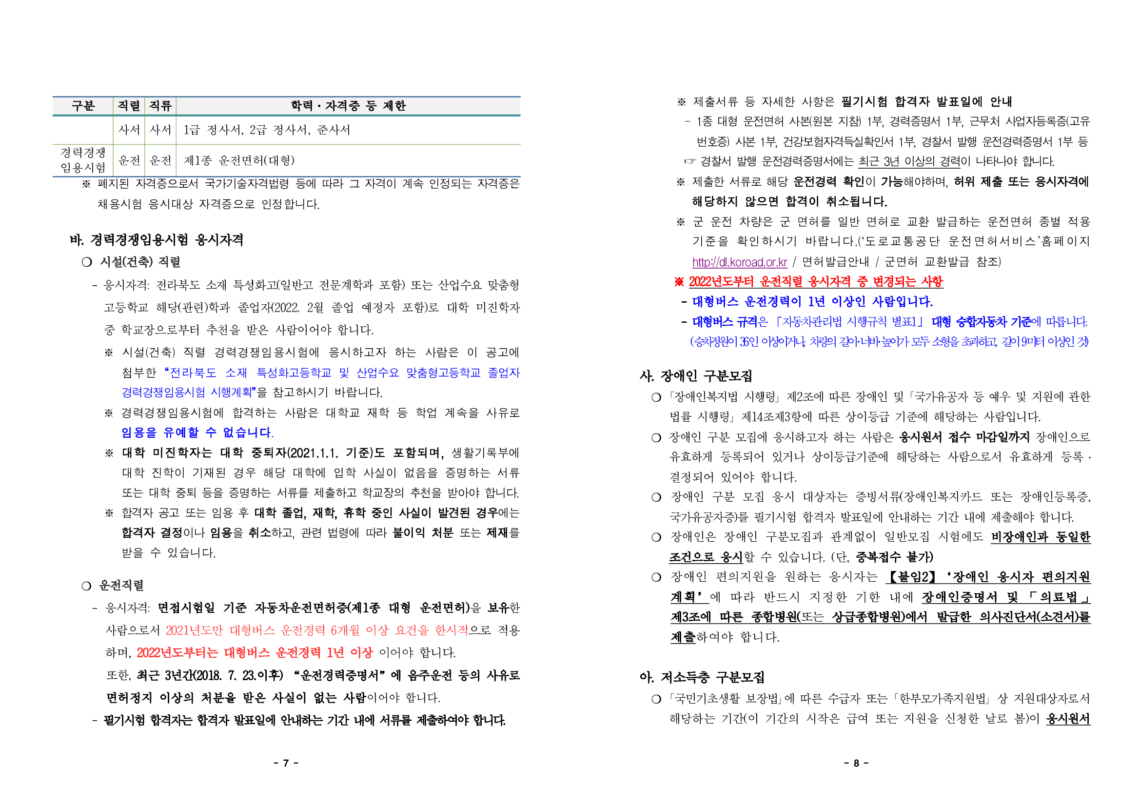 그리고 일반 공채와 더불어 경력경쟁 임용시험으로 시설 건축직이 3명, 운전직이 12명 있습니다.