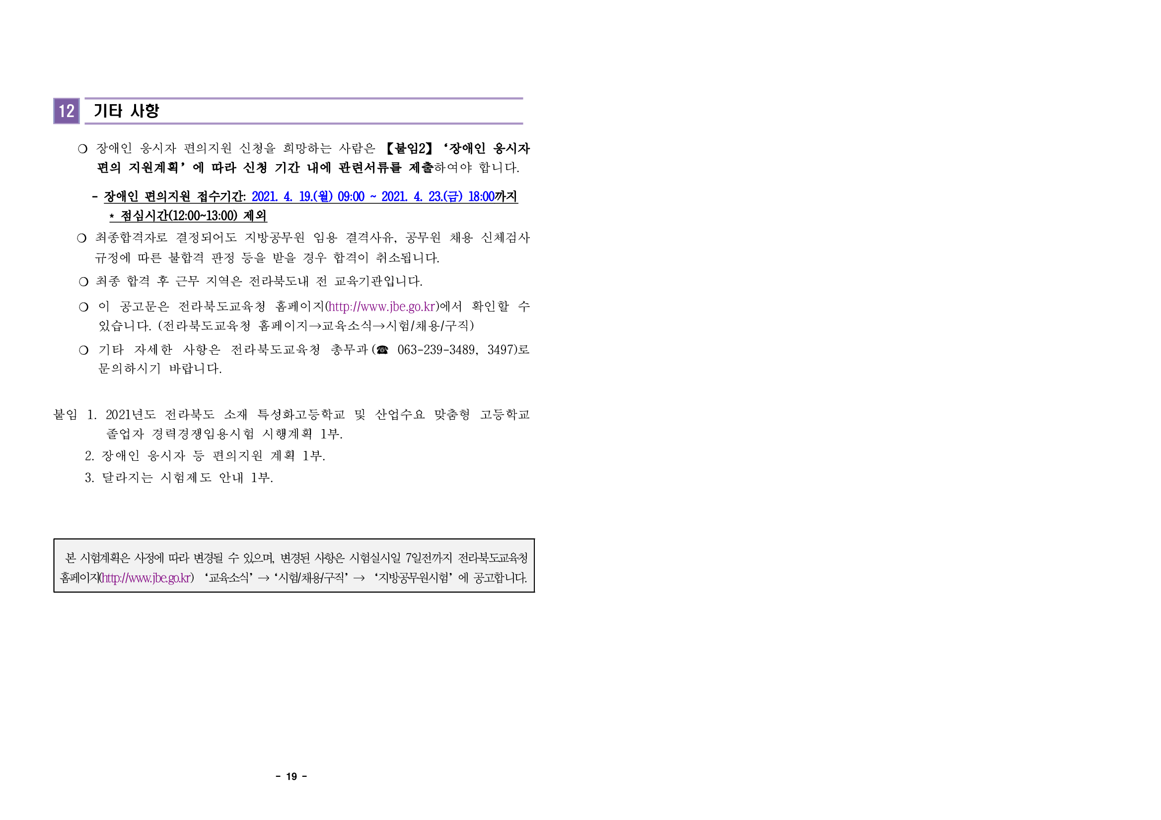 | 2021년 전북 지방직 공무원 시험 일정 공고 원서접수 (0) | 2021.02.20 |