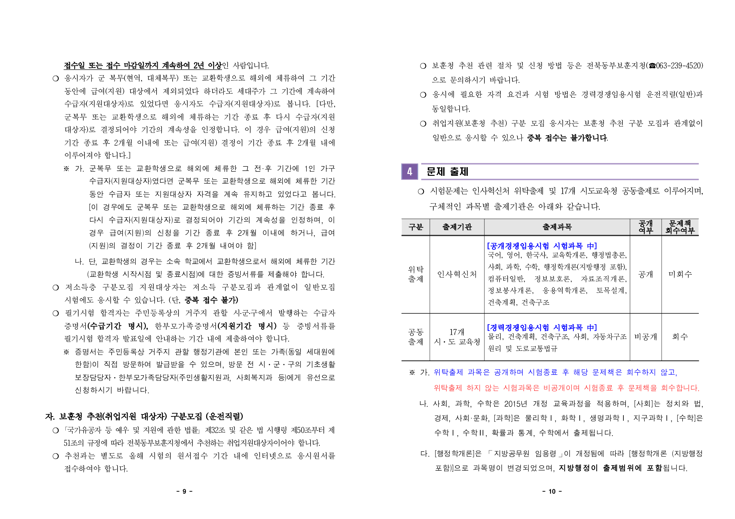17 시도 교육청에서 공동출제하는 물리, 건축계획, 건축구조, 사회, 자동차구조원리 및 도로교통법규는 비공개하고 문제책을 회수하므로 이점 참고 하시기 바랍니다.