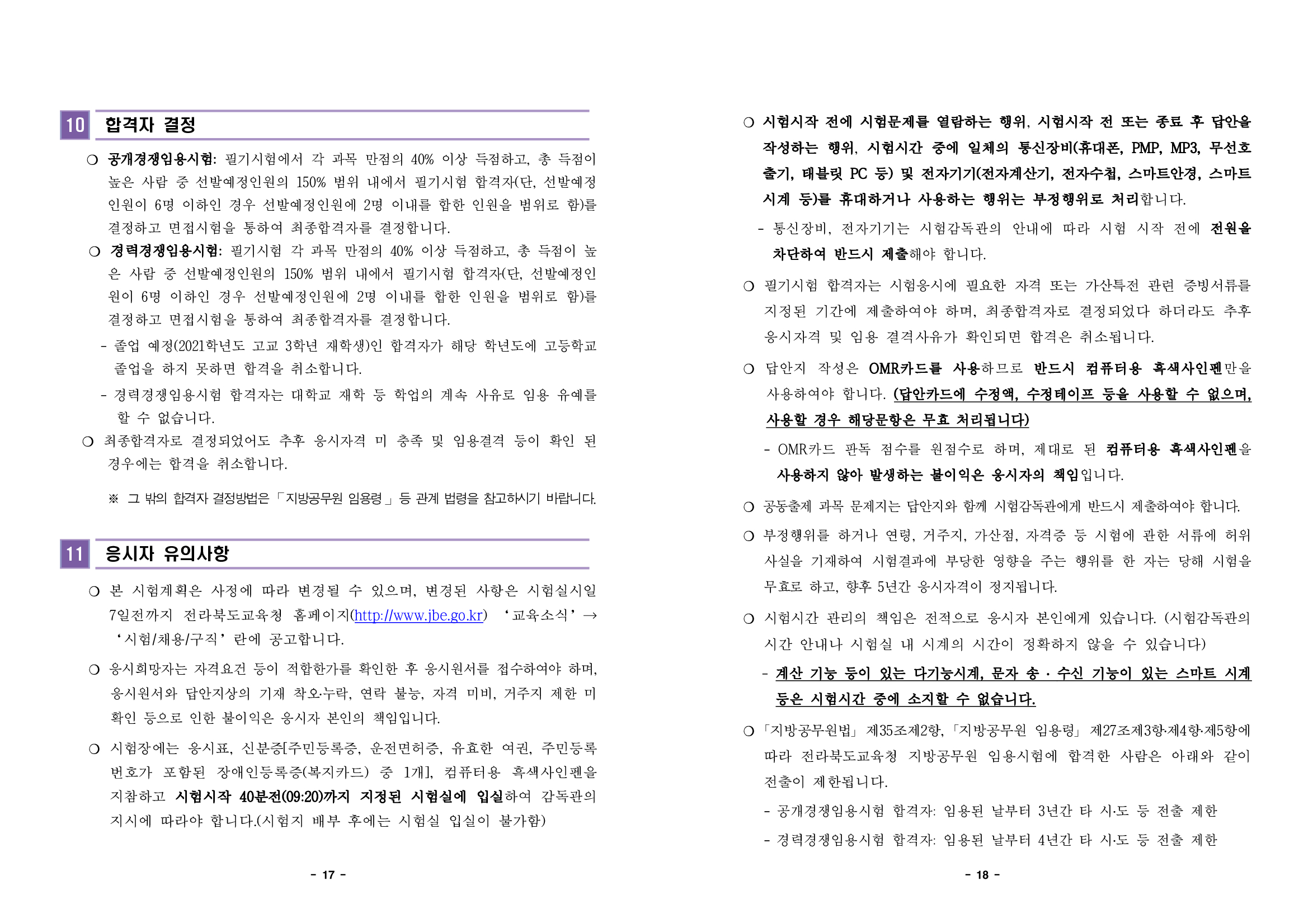 전라북도교육청 홈페이지에서 시험 장소 및 합격자 발표를 하고 있습니다.