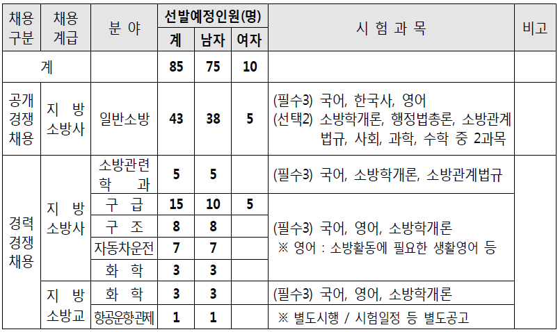 이번 2020년 대전시 소방공무원 채용인원은 공개경쟁채용과 경력경쟁채용으로 나누어 집니다.