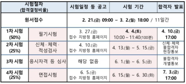 당해 시험일정 변경, 단계별 시험장소 및 합격자 명단 발표 등 시험시행과 관련된 모든 사항은 접수 지방경찰청 홈페이지에 공지를 한다고 합니다.