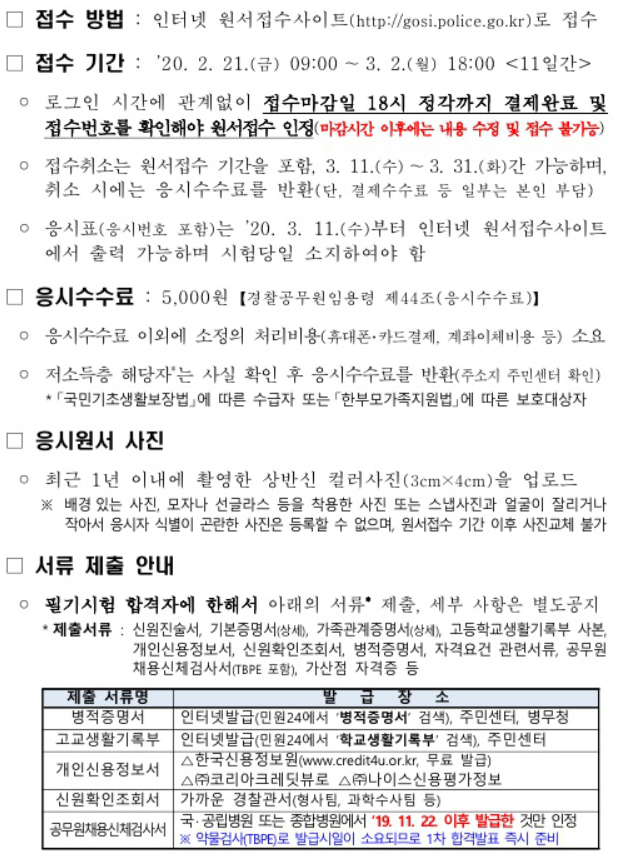 자세한 내용은 경찰청 공고문을 꼼꼼히 확인해보시기 바랍니다.