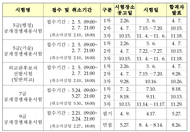 그리고 시험관리 사정 등에 따라 단일 시험의 시험 일자라던가 시간 등이 직렬별 직류별로 구분되어 실시될 수 있다고 합니다. 변경사항 또한 사이버국가고시센터를 통해 안내가 될 예정이라고 합니다.