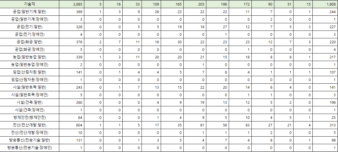 최종 합격자 평균 연령은 28.1세로 지난해(28.5세)보다 다소 낮아졌으며, 연령대별로는 25~29세가 56.7%(475명)로 가장 많았으며, 이어 20~24세 18.6%(156명), 30~34세 15.8%(132명), 35~39세 5.1%(43명), 40~49세 3.1%(26명), 50세 이상 0.7%(6명) 순이었습니다.