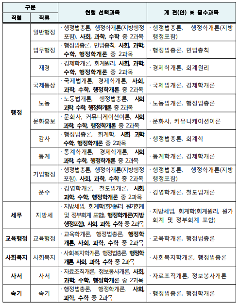 2022년부터 적용되는 것은 9급 공개경쟁임용 필기시험 고교과목 폐지 및 직렬별 전문과목 필수화되고, 9급 공개경쟁임용 필기시험 선택과목 조정점수제 폐지되는 것 입니다.