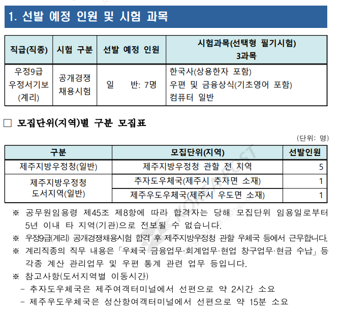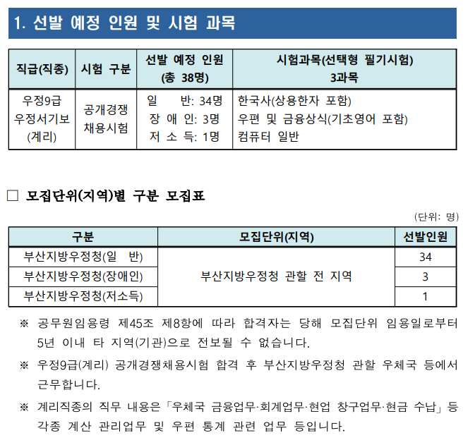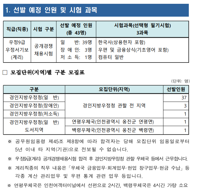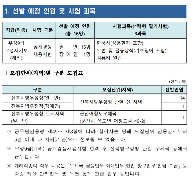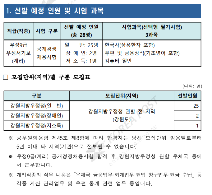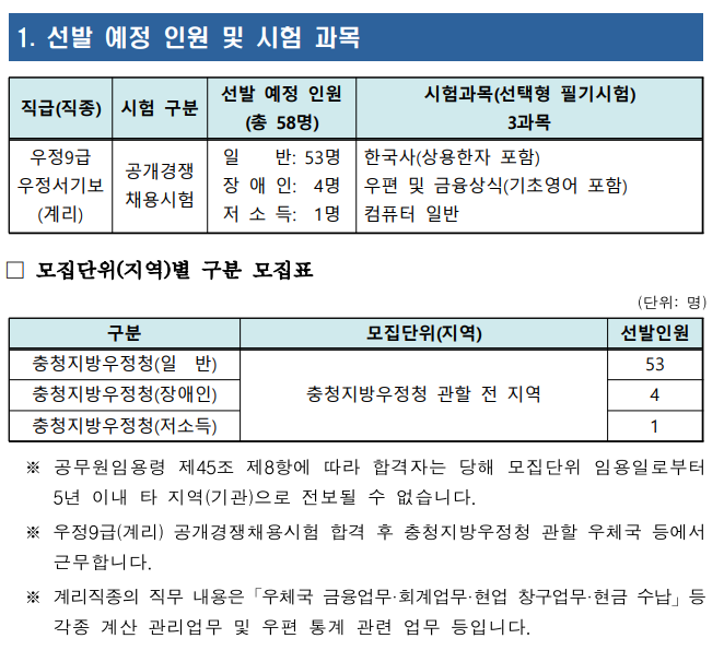 [공무원정보] - 총정리 계리직 공무원의 시험 일정 과목 합격선
