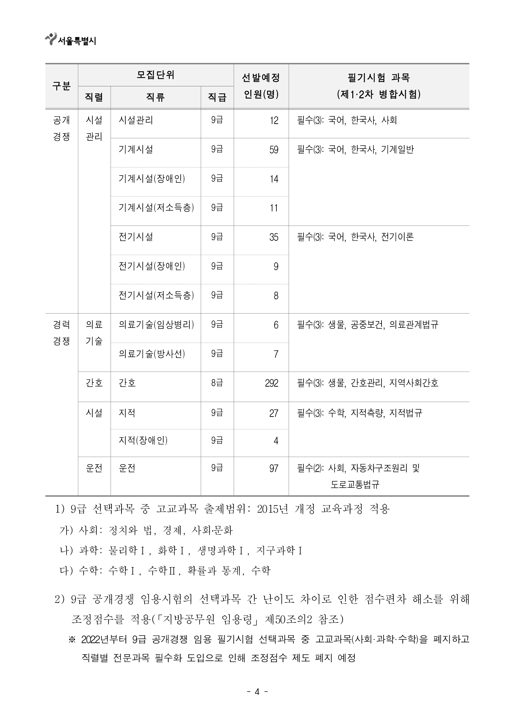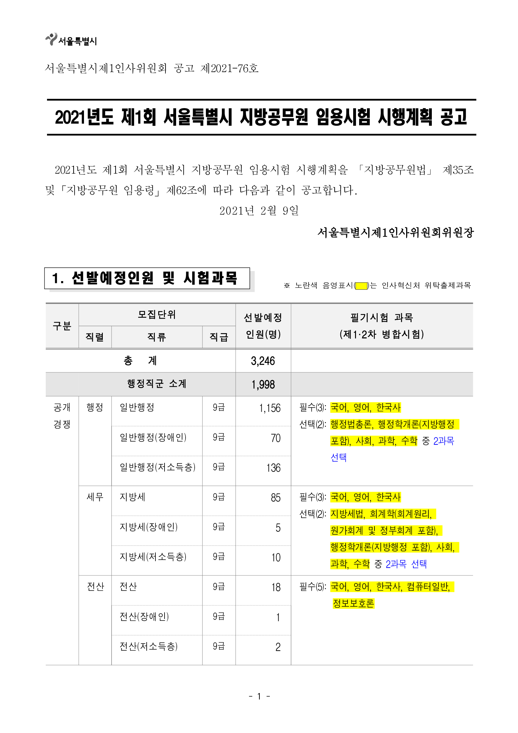 서울시가 2021년 제 1회 지방공무원 임용시험 시행계획 공고를 발표했습니다.