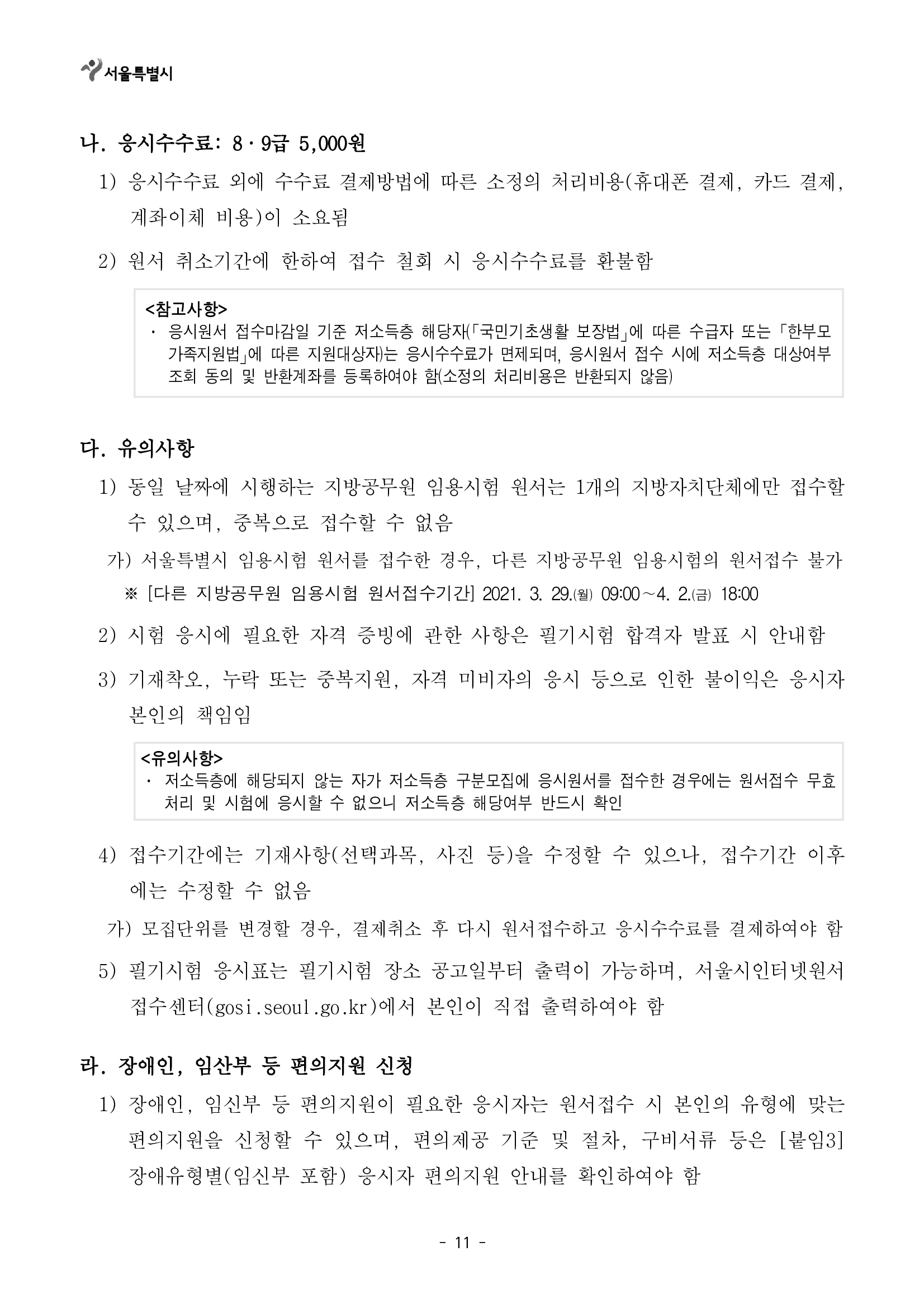 | 2021 제2회 서울시 지방공무원 임용시험 사전안내 (0) | 2021.02.09 |